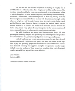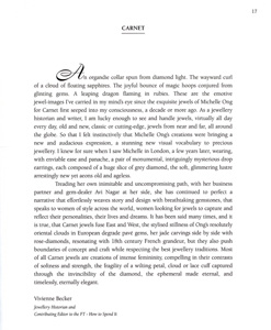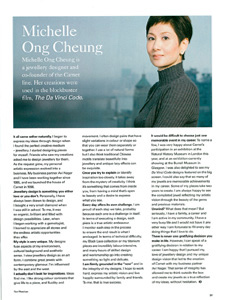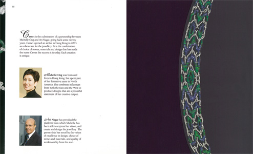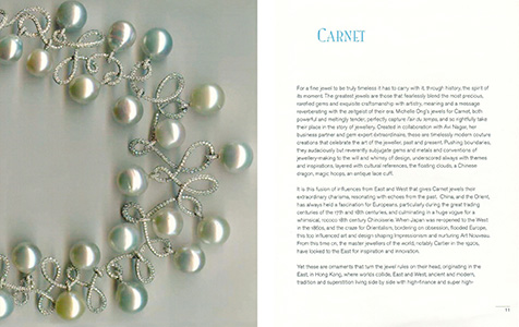 "I design to make Carnet the embodiment of today's woman. In my jewellery design and presentation, I work to reflect a natural glamour, an unabashed feminine sensibility and a strong sense of personal style. Carnet's creations enhance and are enhanced by those who choose to wear my designs." Michelle Ong.