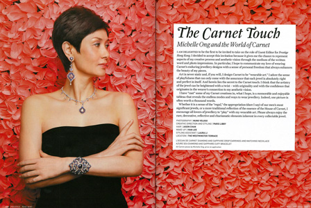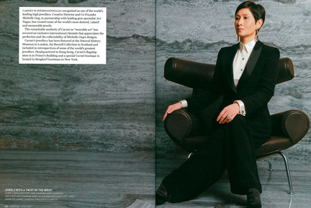 Carnet's impeccable reputation owes much to the artistic vision of Michelle Ong. Her passion for combining traditional and modern materials and motifs has contributed to Carnet's reputation as a jeweller of major international importance. Her timeless masterpieces reflect the Carnet sensibility.
