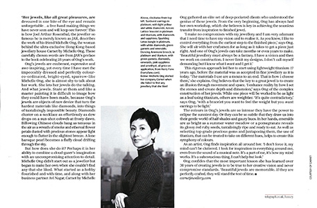 Michelle Ong transcends the impossible in her creations; approaching jewellery design as an art form fusing together her artistic vision and perfection in design. Ong's love of expression through the medium of jewels breathes life into Carnet jewellery. Each Carnet piece truly becomes a collectible jewel to be worn, admired and enjoyed.